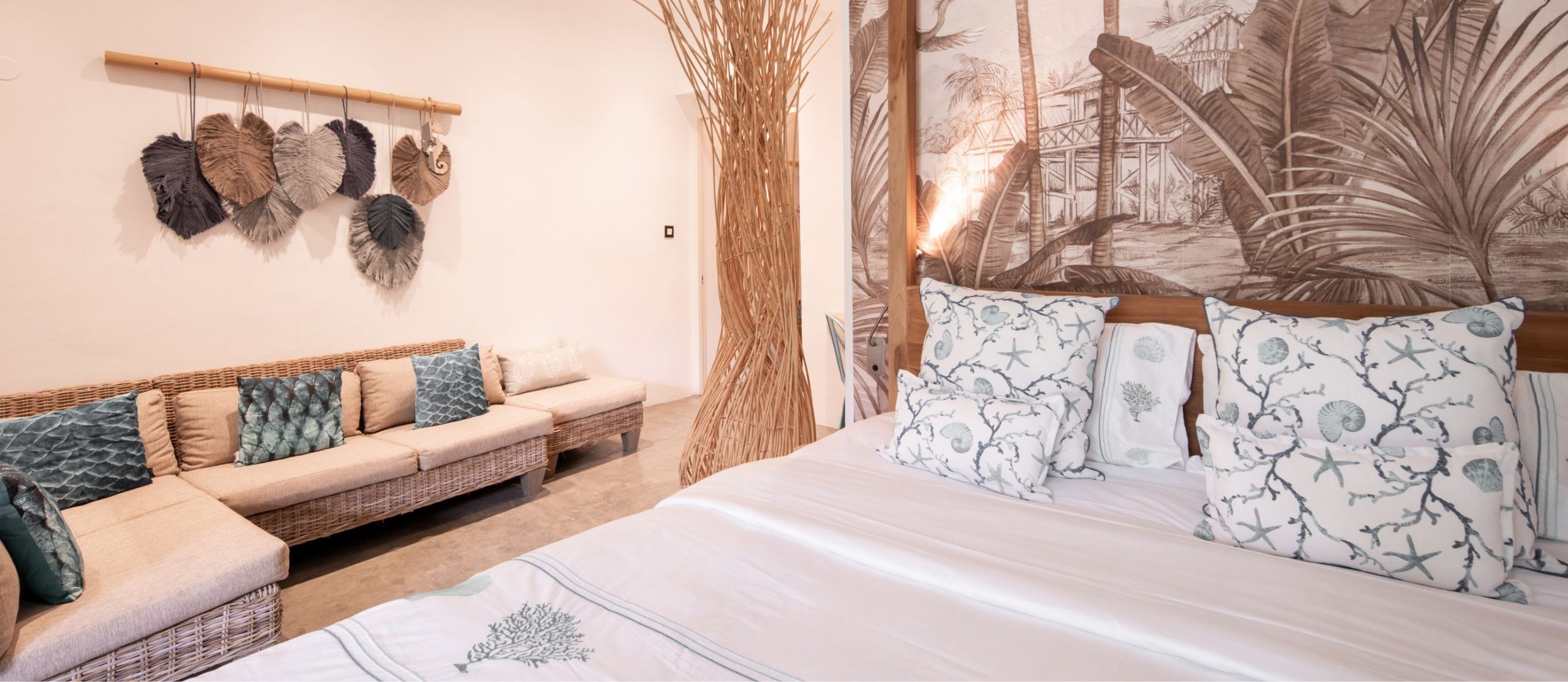 At the heart of this tranquil setting lies Blue Lagoon, a contemporary beachfront villa offering barefoot luxury at its finest. Surrounded by turquoise waters and tropical greenery, the villa combines sleek modern design with the island’s relaxed spirit.