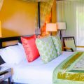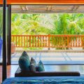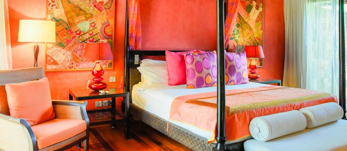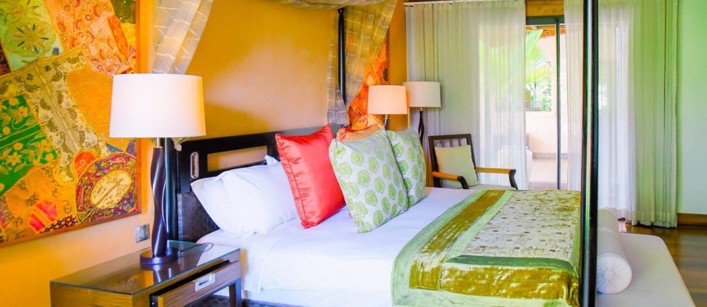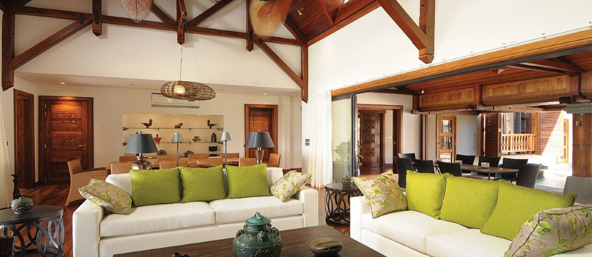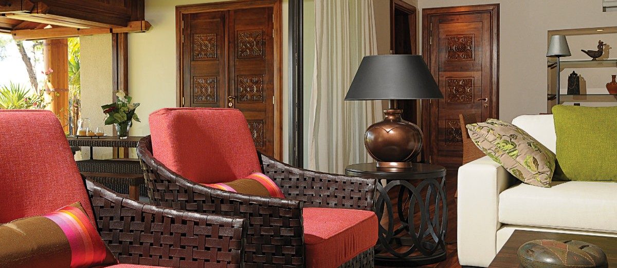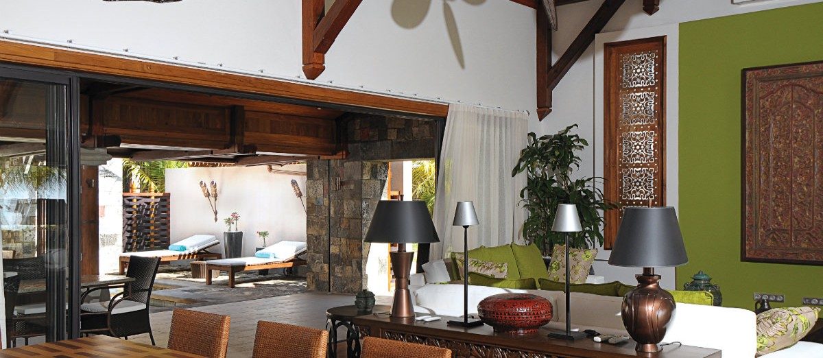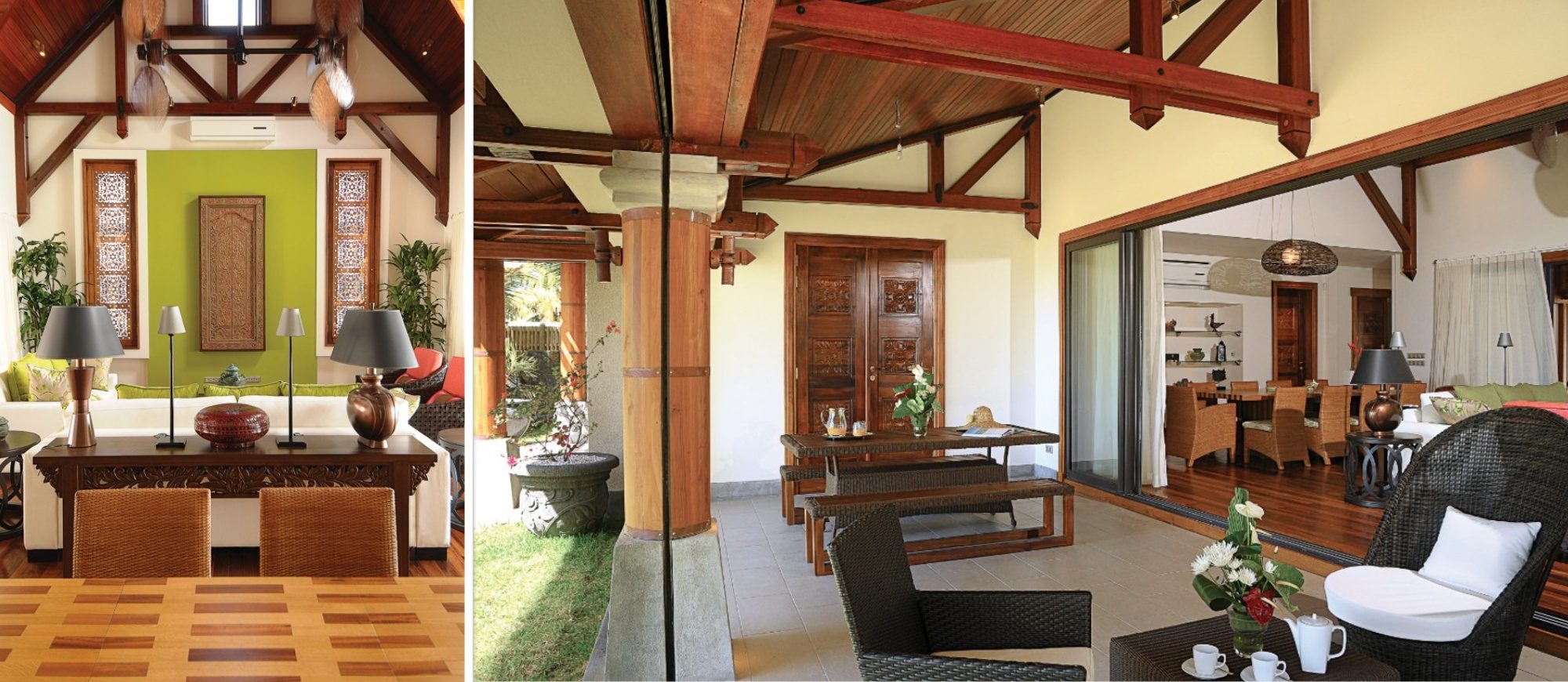 Finely lathed woodwork and noble materials, soft colours and natural light, all blend perfectly in a décor specially woven to conjure a universe cocooned in serenity where one can relish a taste of island living. A symbiosis of Balinese, Moroccan, and Mauritian architectural styles, blending sobriety and elegance with simplicity and refinement.