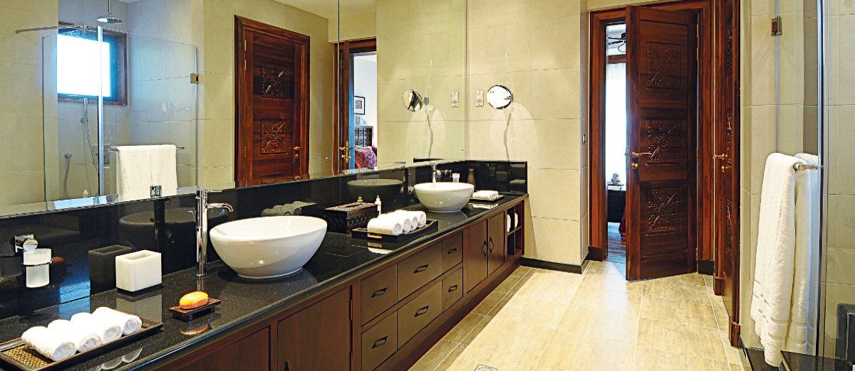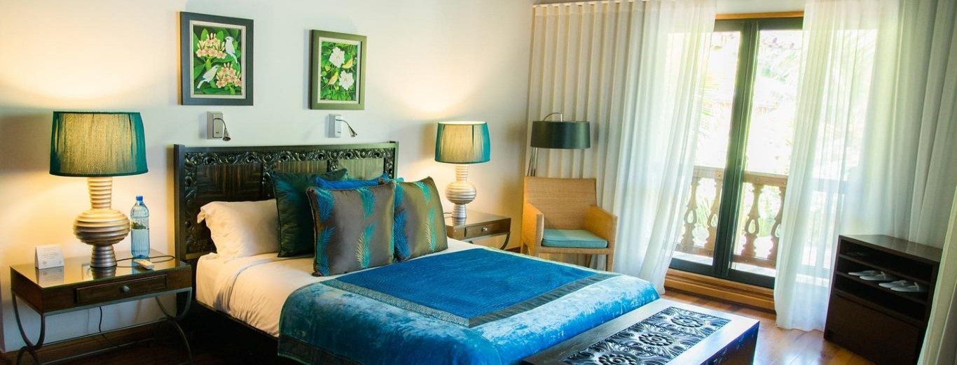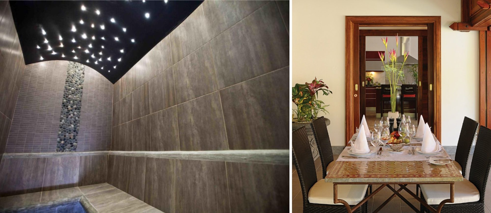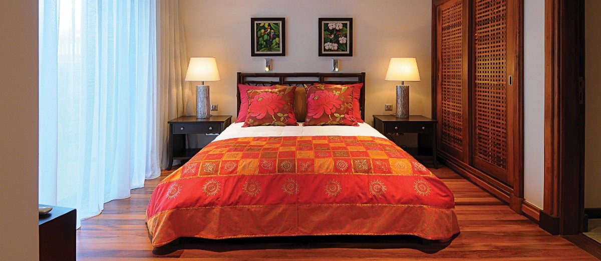 Finely lathed woodwork and noble materials, soft colours and natural light, all blend perfectly in a décor specially woven to conjure a universe cocooned in serenity where one can relish a taste of island living. A symbiosis of Balinese, Moroccan, and Mauritian architectural styles, blending sobriety and elegance with simplicity and refinement.