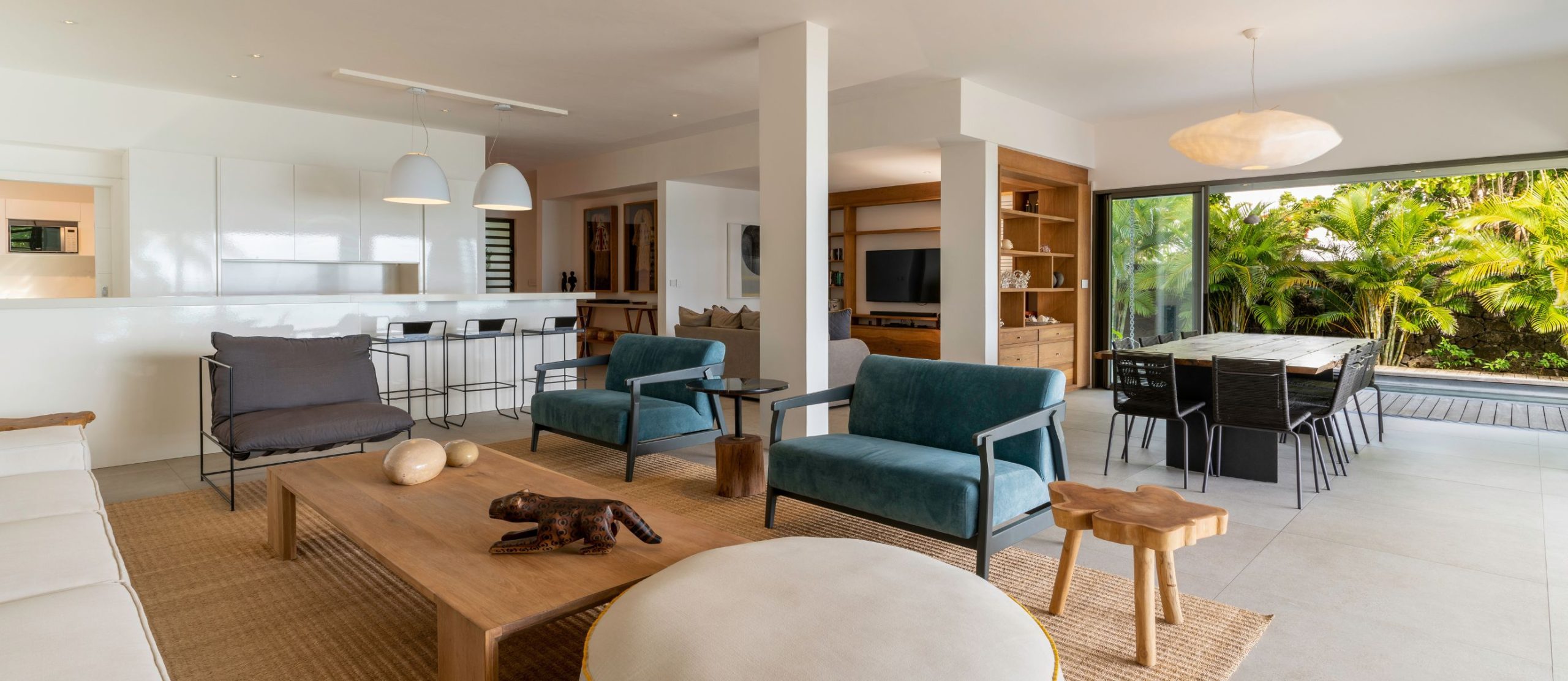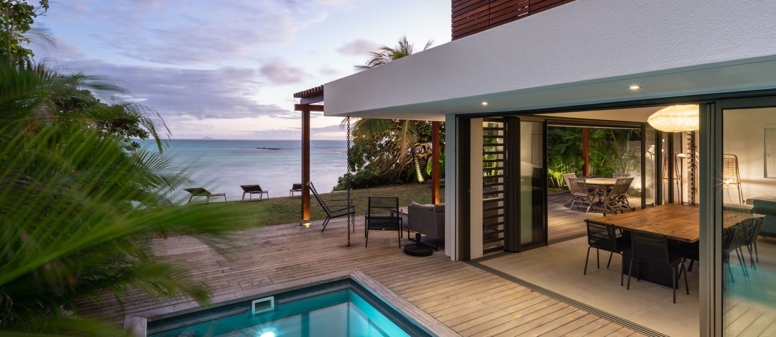 A private stretch of sand invites barefoot strolls, while a tranquil plunge pool offers a serene space to unwind, with the lagoon’s crystal-clear waters just steps away. Whether you’re lounging in the shade or sipping cocktails at sunset, Shore Villa provides the perfect backdrop for stylish, soul-soothing escapes. Designed for families and small groups, it captures the very essence of exclusive island living, where sophistication, intimacy, and the rhythm of Mauritian life come together in harmony.
