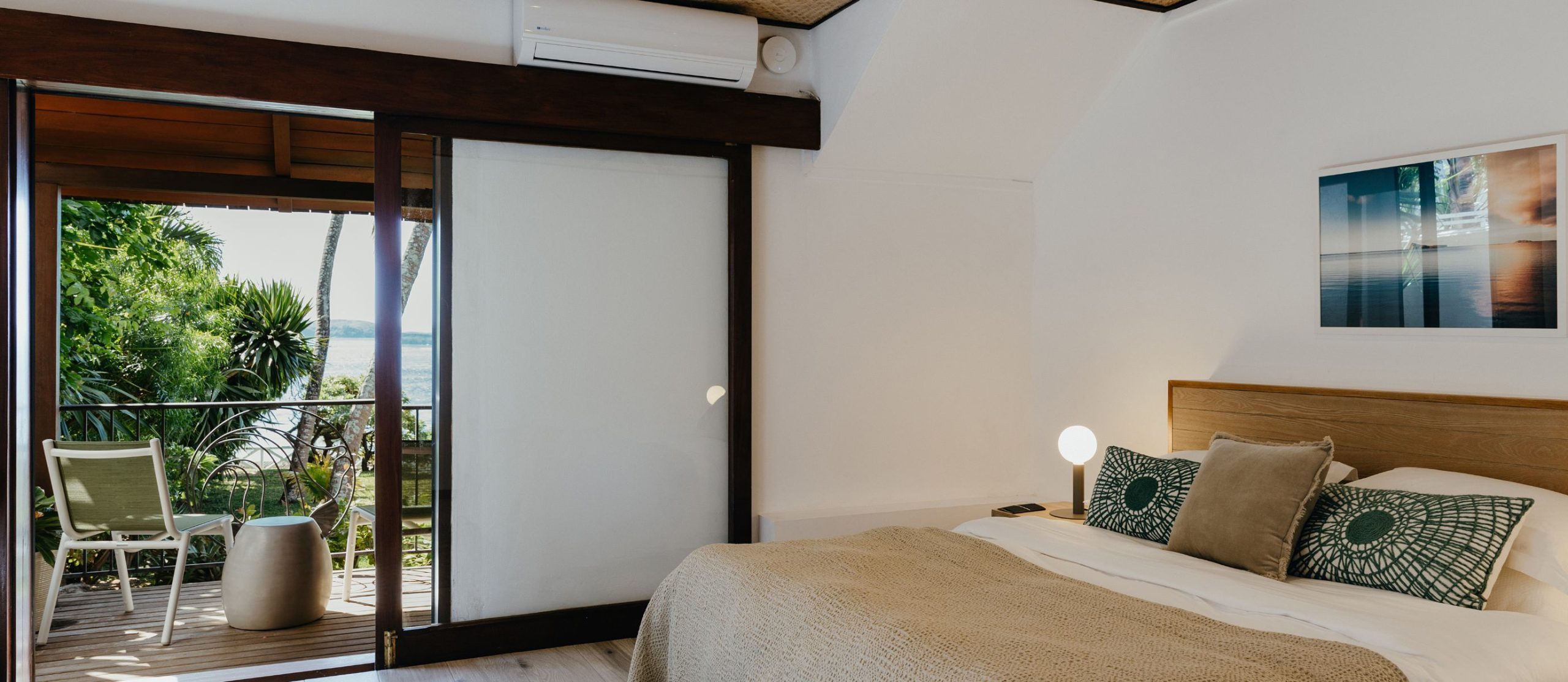 The basement offers privacy, with two ensuite bedrooms that open onto quiet balconies – perfect for morning coffee or sunset drinks. A private path leads through lush greenery to the beach below.