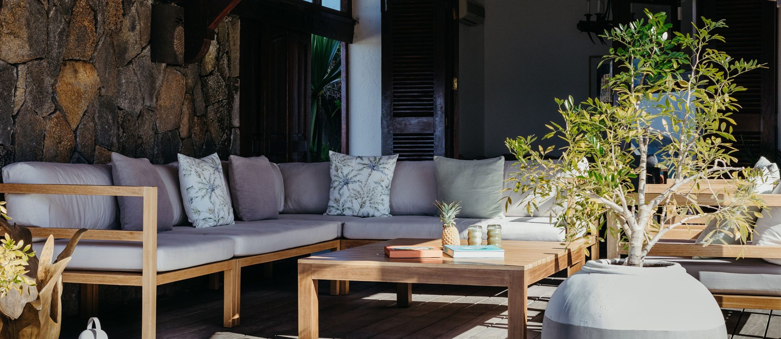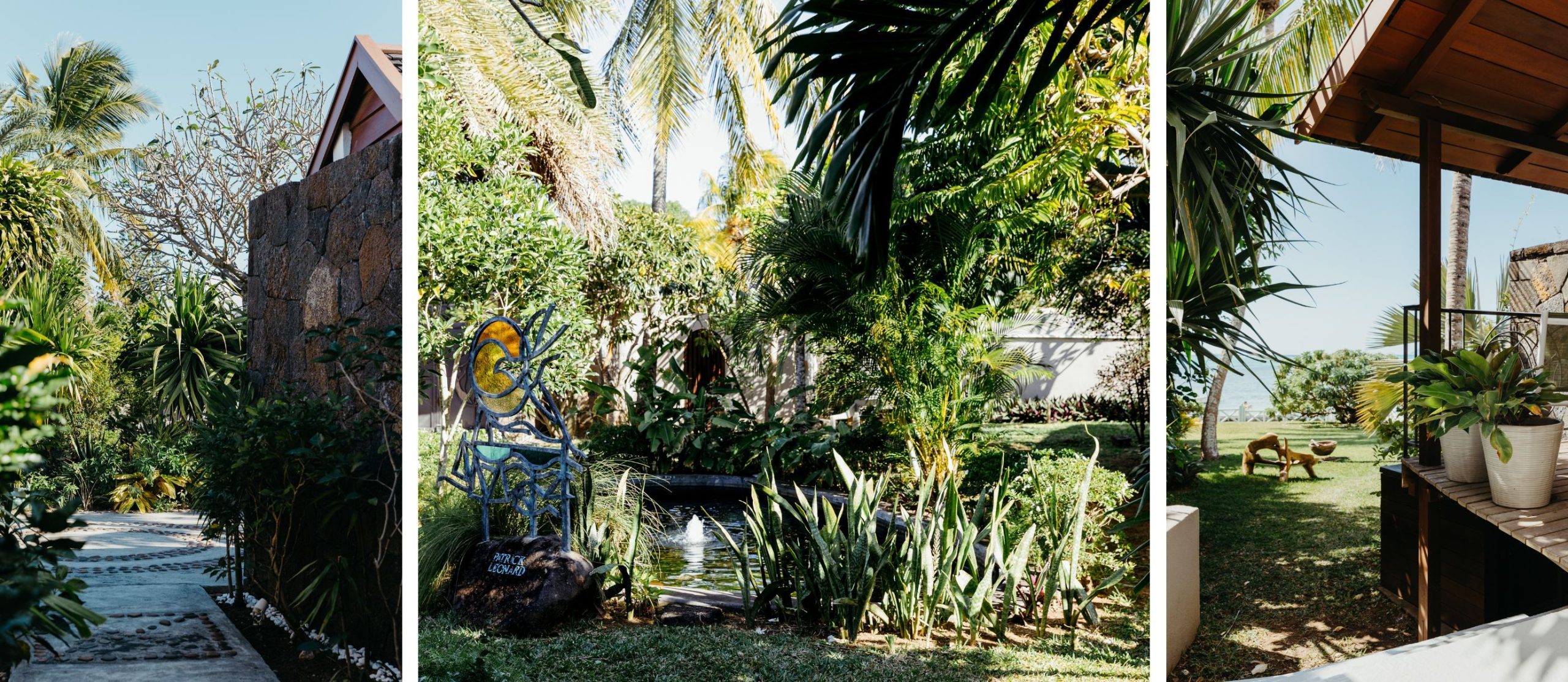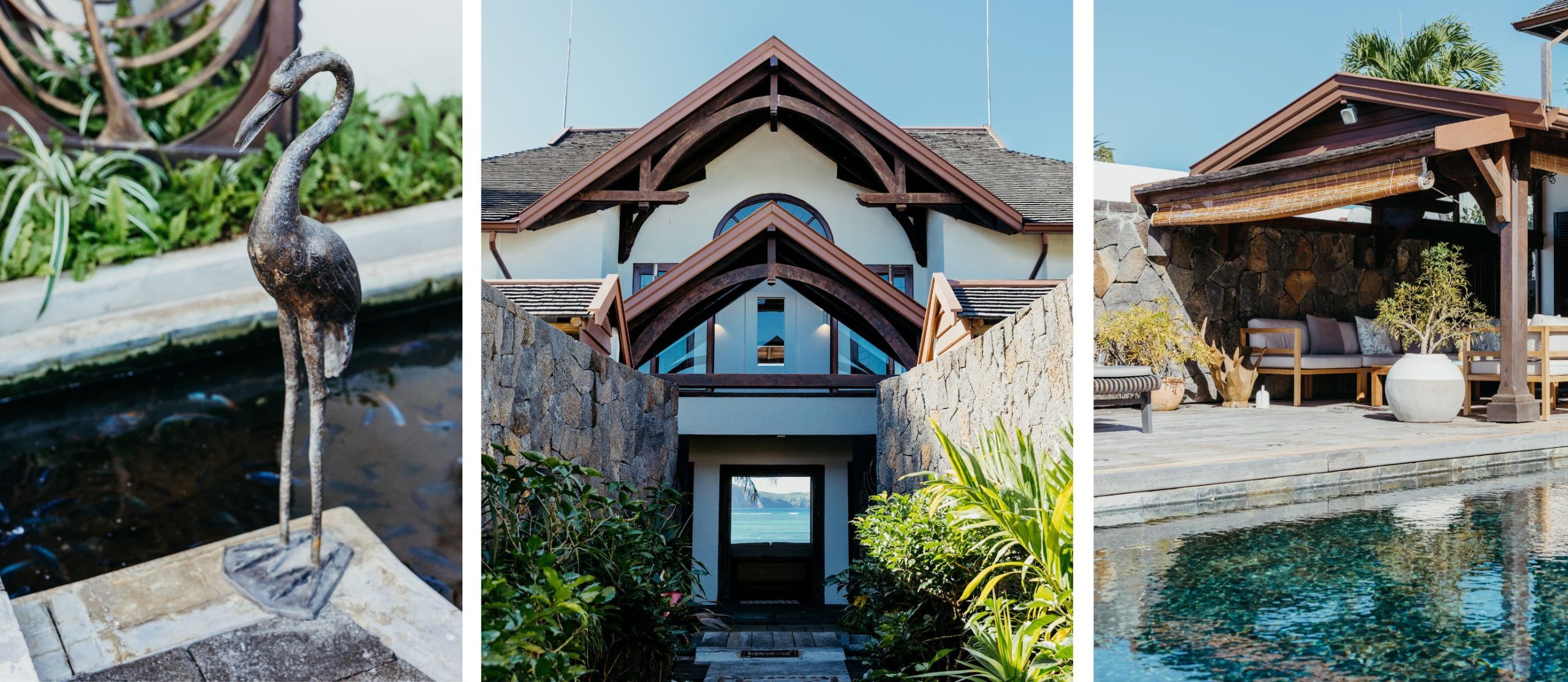 The living areas open wide to embrace the outdoors, inviting in light, breeze and the rhythm of island life. A Zen garden greets you at the entrance, where koi fish ripple and turtles bask in the sun. Inside, rich wooden beams and natural stone create a rustic elegance and timeless calm.