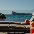On the ground floor, an ensuite bedroom suits early risers. Open-plan living and dining areas extend onto terraces that frame the sea like a postcard. Upstairs, the master suite offers a walk-in wardrobe, ocean-view shower, and private terrace. A second cosy bedroom on this level is finished in warm wood tones.