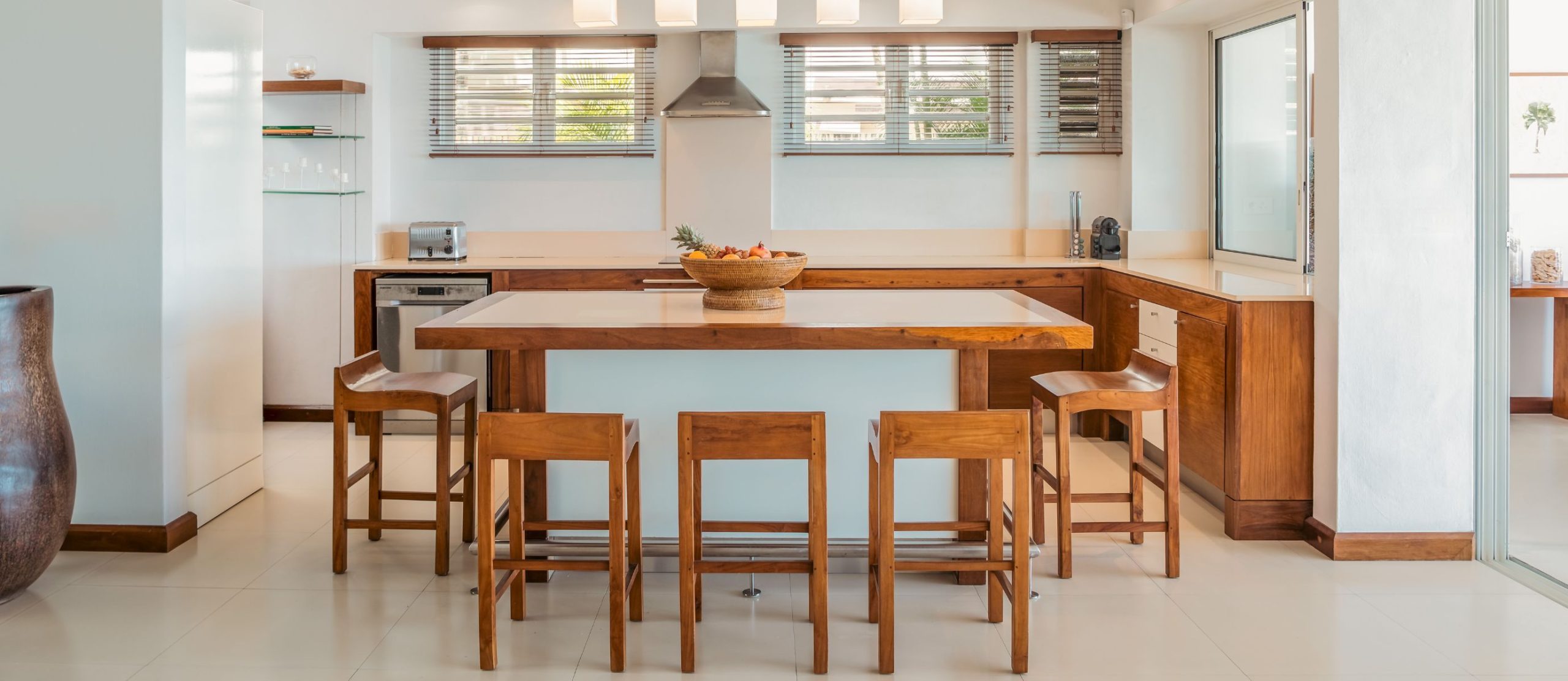 Villa Canonniers is designed for both comfort and indulgence. With four spacious bedrooms and nine bathrooms, it ensures privacy and ease for families or friends. Thoughtfully appointed interiors feature air-conditioning, a fully equipped kitchen and elegant furnishings that blend modern comfort with coastal charm.