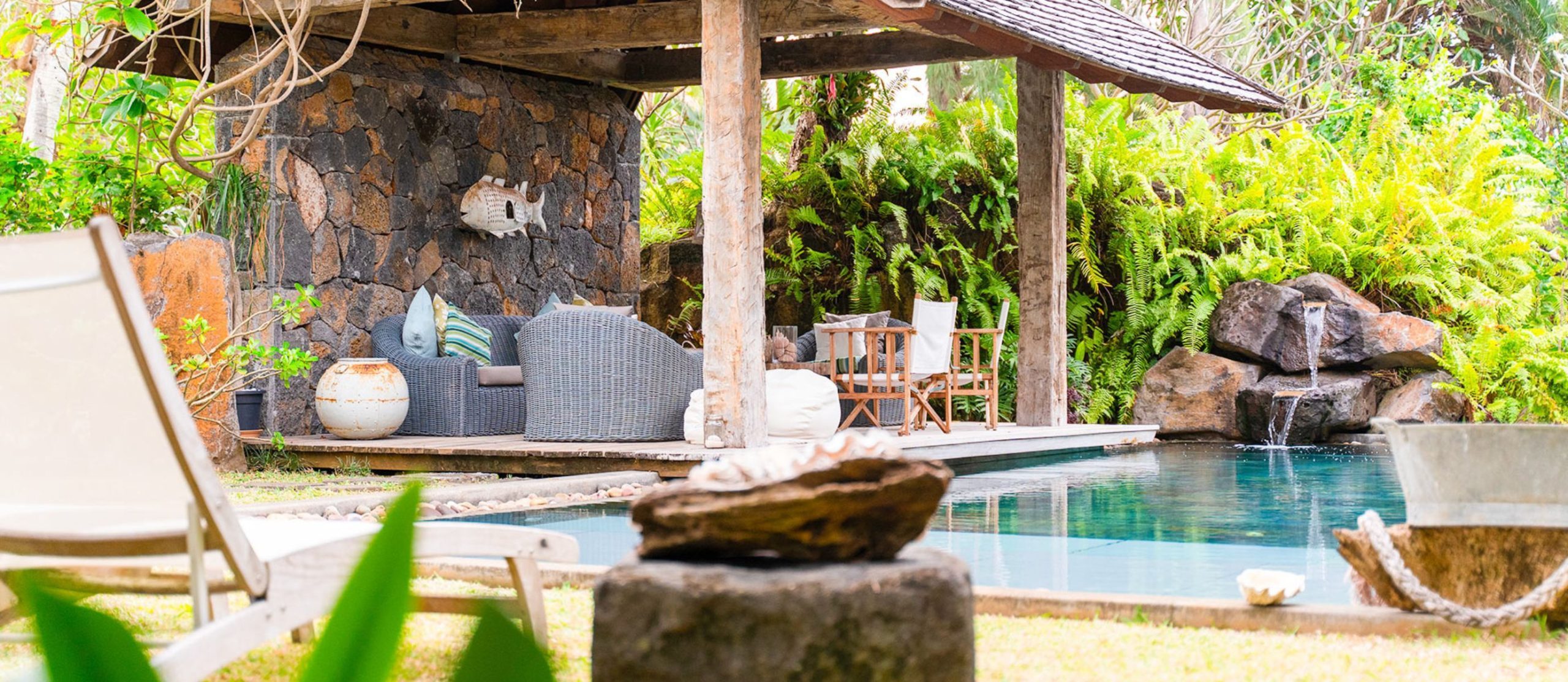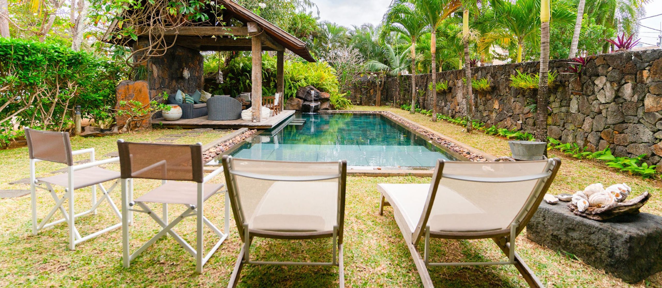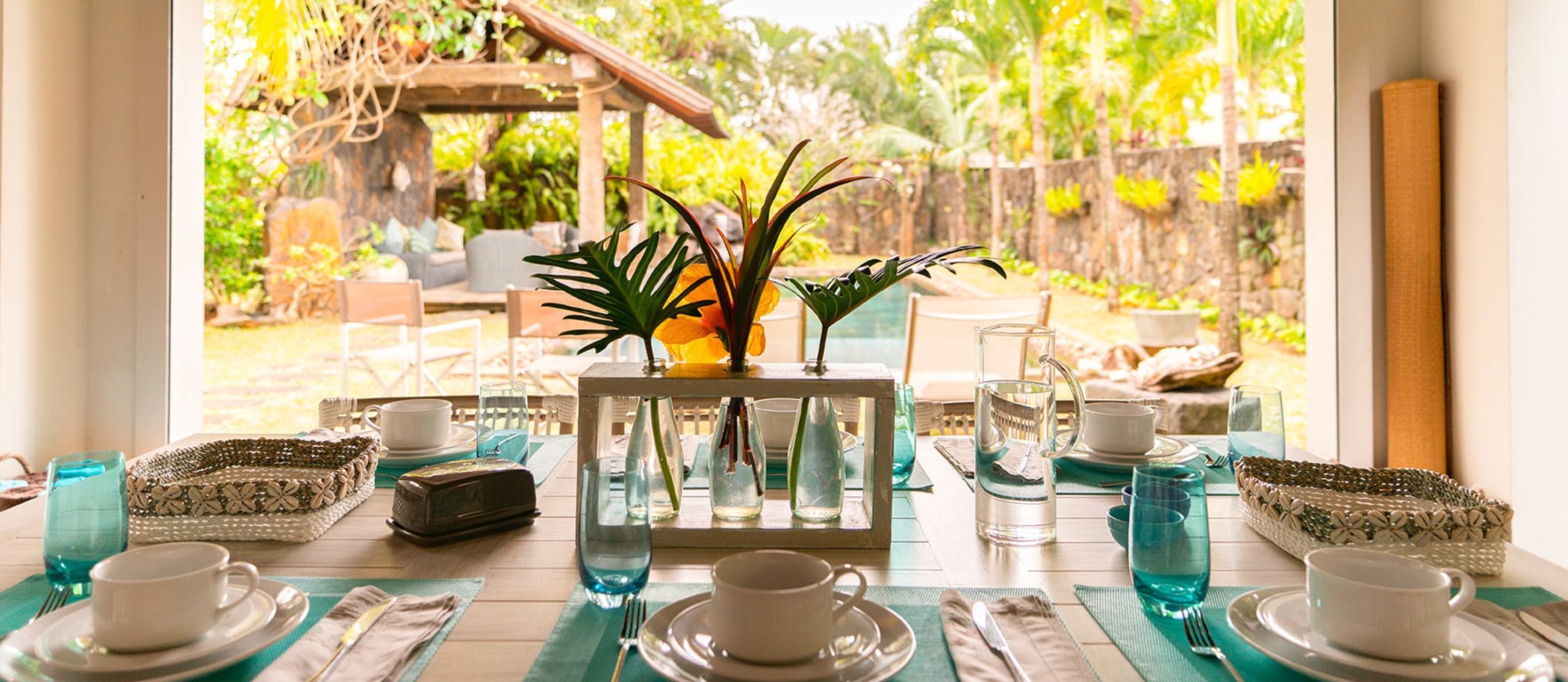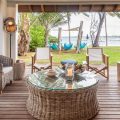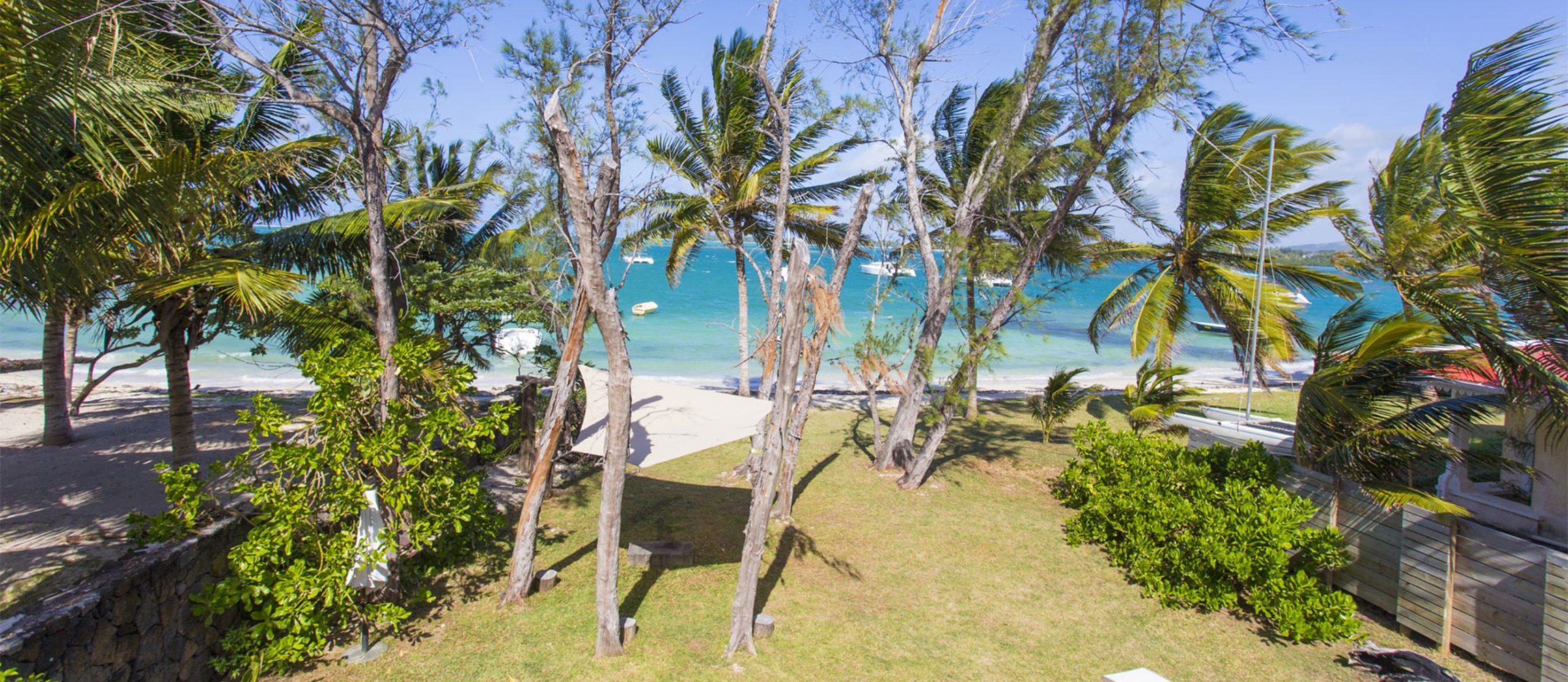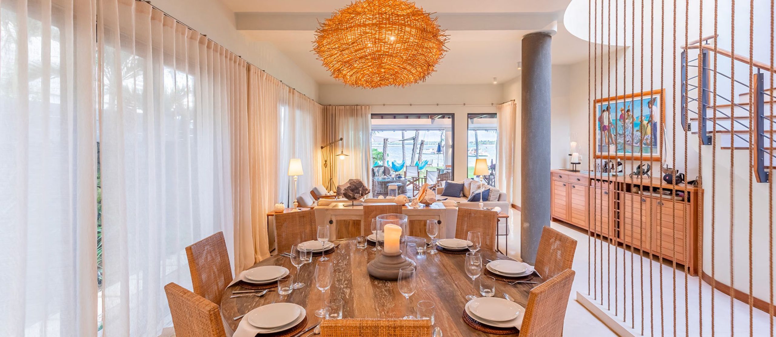 But it’s the villa’s seaside location that truly sets it apart. Step outside and you’re greeted with sweeping views of the shimmering turquoise lagoon and the enchanting island of Île aux Mangénie just across the water. Whether you’re enjoying a lazy breakfast on the terrace or an evening dip under a sky filled with stars, the sense of peace here is palpable.