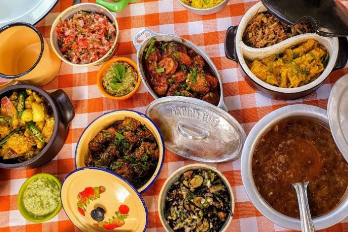 Le traditionnel repas créole mauricien est toujours composé de plats gouteux et souvent mijotés à base de viande ou de poisson, comme la fameuse Rougaille de saucisses créoles, le cangraillé de chou et poisson salé, le Cari zourite et papaye verte ou encore le Salmi créole de cerf servis avec le riz, lentilles, fricassé de légumes et chatinis.