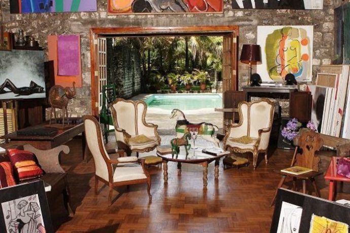 In the heart of Trou d’eau Douce, overlooking a large banyan tree that is over a hundred years old, the sugar mill has become the setting for a gourmet restaurant. In the evening the lights illuminate the stone building, enveloping it in a seductive atmosphere. Inside the paintings of Maniglier, Matisse’s last student, are revealed like the watermark of his life.